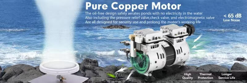 Equipped with upgraded pure copper motor, Our pond aerator could work in for a very long time use for cost-effective purpose. The working temperature of the aeration pump is from 0 ℉ to 100℉, almost fit for all seasons. Aerator could be used as a deicer in winter.Strong motor power, strong air output, strong air flow, high density oxygen in deep water, Pond air pump is ideal for deep water circulation to improve the underwater living environment for your fish or aquatic.